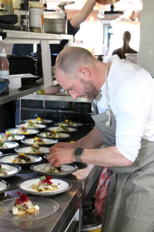 De gerechten worden met zorg bereid door onze chef en geserveerd in de sfeervolle Fruitloods. Elk diner wordt begeleid door een passend wijnarrangement, dat de smaken van elk gerecht versterkt.