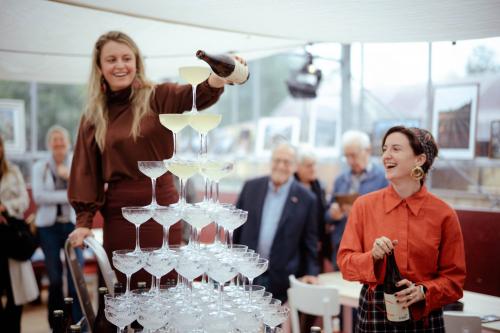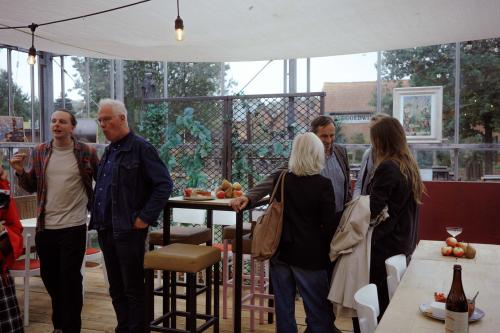 Het Paviljoen is onze meest veelzijdige locatie en bestaat uit drie samenhangende onderdelen: een lichte glazen kas, een ruime tent en een royaal terras met loungebanken, reuzenparasols en een sfeervolle vuurplaats. Deze locatie ligt midden op het landgoed, omringd door appelbomen en een groot open veld – perfect voor grotere zakelijke bijeenkomsten in een informele en inspirerende setting.